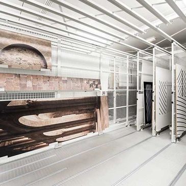 DOUBLE DECKER MOBILE SHELVING Bruynzeel’s Double Decker mobile shelving is an ideal solution to maximize your archive storage if you have a building or storage facility with high ceilings. Bruynzeel’s Double Decker mobile shelving is an ideal solution to maximise your archive storage if you have a building or storage facility with high ceilings. Compactus Double Decker provides four times the capacity of ordinary static storage. It offers the ultimate space optimisation for buildings with high ceilings, and costs less than the equivalent installation of mobile shelving across two floors. A touch-sensitive electronic control panel makes operation of the system simple and user-friendly. The system’s “soft start and stop” mechanism allows the shelves to move safely and without vibration. Our sophisticated drive system moves at a constant speed regardless of load. Valuable and delicate objects remain perfectly in place. As a result, the Double Decker is proving an extremely popular choice for museum repositories, as well as for archive storage. The two levels of shelving are connected by a unique wheel console with the uprights running the full height of the system. The weight of both levels is carried solely by the mobile units on the ground floor. Top and bottom bays move together in one smooth motion along the slots in the steel grid floor. Clear sight lines between the two levels are maintained by the addition of a steel mesh mezzanine. Alternatively some customers prefer to specify wooden floor panels on the double decker mezzanine, which Bruynzeel will supply and fit on request.