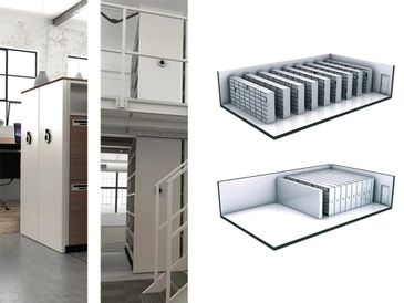 Double Decker system consists of mobile units with 2 levels of shelving and a mezzanine construction. Suited for large archives, taking advantage of high ceilings to maximise storage capacity. The system can be equipped with advanced safety options, LED lights and numerous accessories. Increase your storage capacity by 400%!