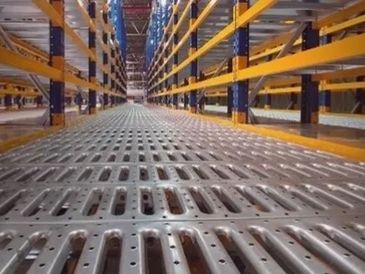 Driven-in pallet racking system is designed for high density storage, used in warehouse to store homogeneous products on a first in/last out (FILO) principle, often low in access and rotation of products.